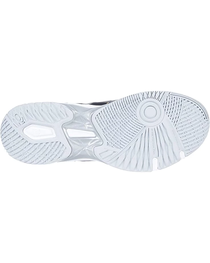 - Rubber and gum rubber outsole containing more natural rubber content than traditional solid rubber for enhanced traction on court systems.