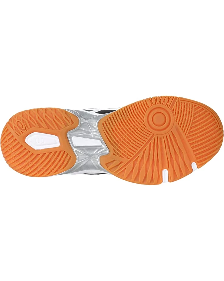 - Rubber and gum rubber outsole containing more natural rubber content than traditional solid rubber for enhanced traction on court systems.