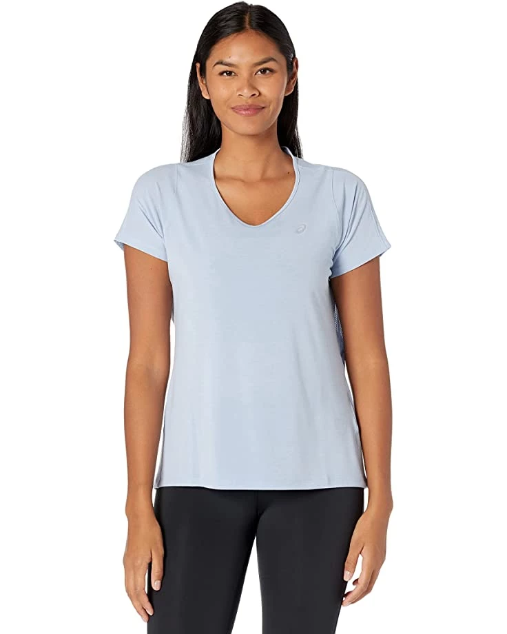 - Running, training, and vegetating are all on the agenda when you’re sporting the athletic ASICS® V-Neck Short Sleeve Top. A modern fit running tee crafted from a breathable and quick-drying fabric for rapid cooling and all-day comfort.