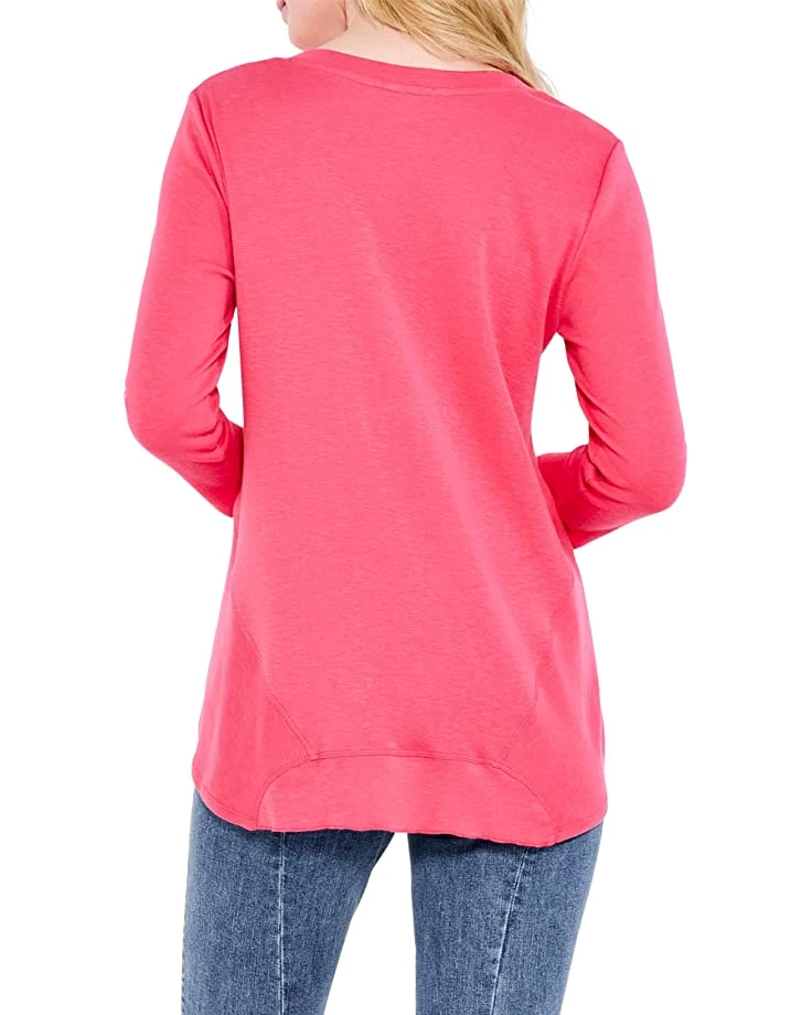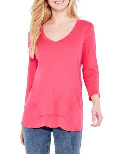 - Sport a casual look in the NIC+ZOEâ„¢ 3/4 Sleeve Drape V Tee as you trek around the city on a mildly chilly day.