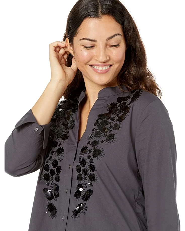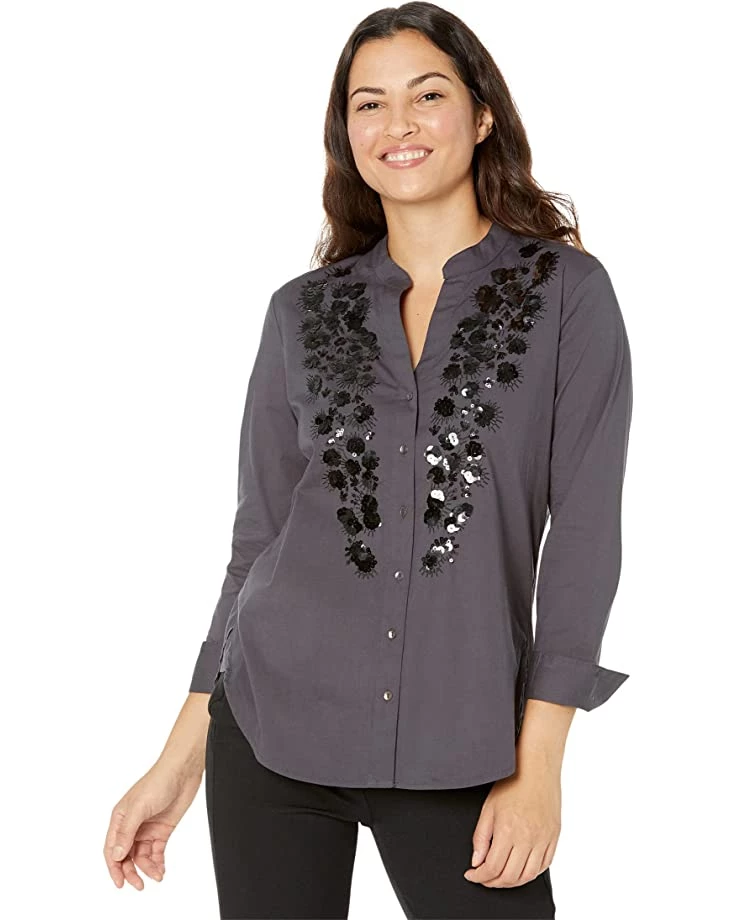 - Add some razzle-dazzle to your collection while ambulating in this Evening Glam Shirt by NIC+ZOE™.