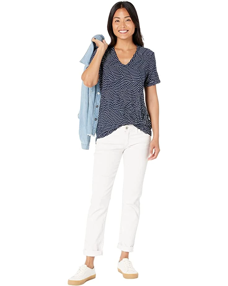 - Keep it chirpy and casual wearing the NIC+ZOEâ„¢ Mixed Lines Tee featuring a unique design.