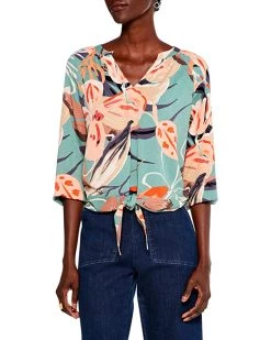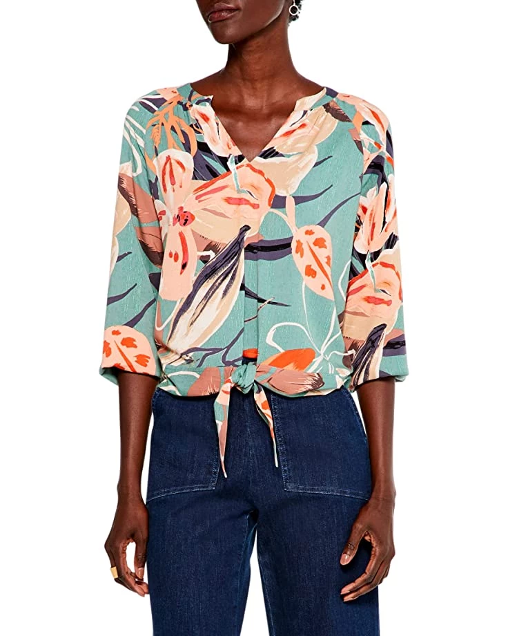 NIC+ZOE Shirts & Tops Petite Artful Floral Live in Tie Top