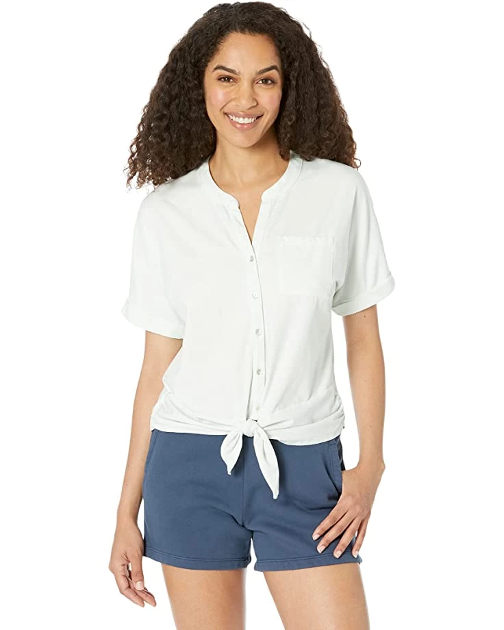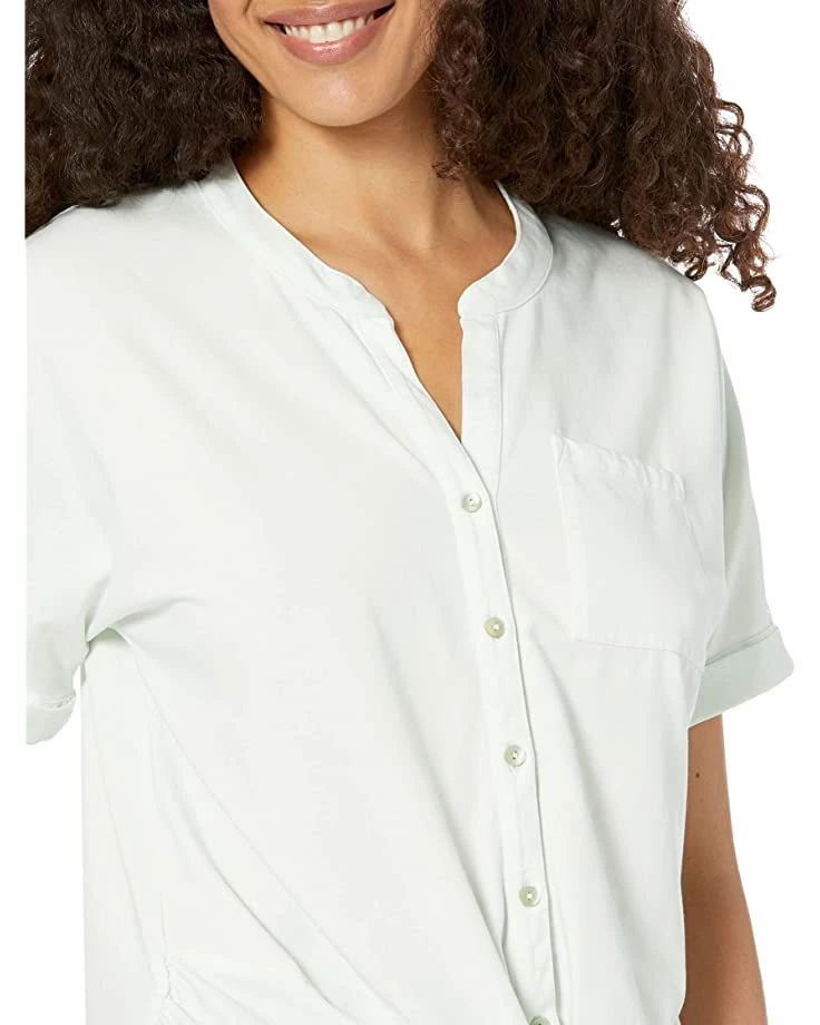 - Look modern and chic wearing the NIC+ZOEâ„¢ Short Sleeve Button Tie Front shirt that feels comfy and is perfect for a fun day out.