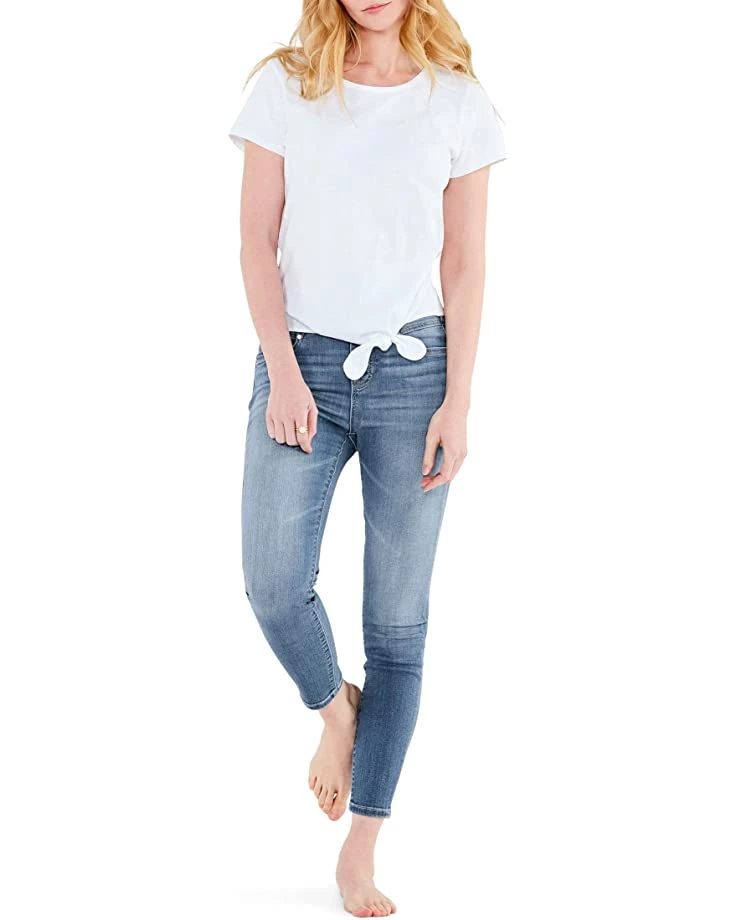- Enjoy all-day comfort during those weekends in a casual style wearing the NIC+ZOE™ Short Sleeve Round Neck Tie Front Tee.