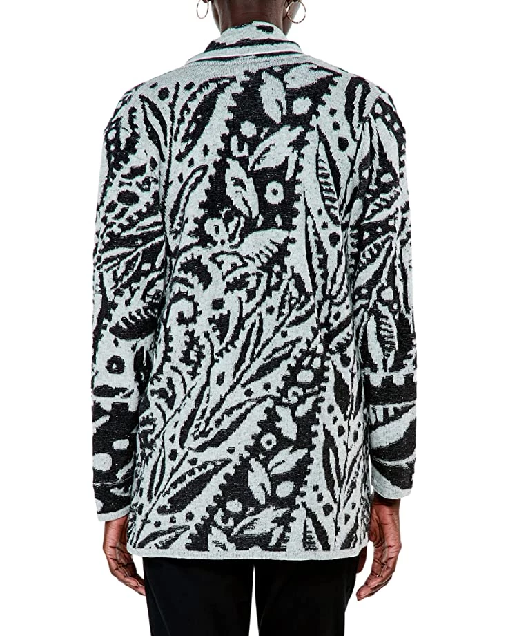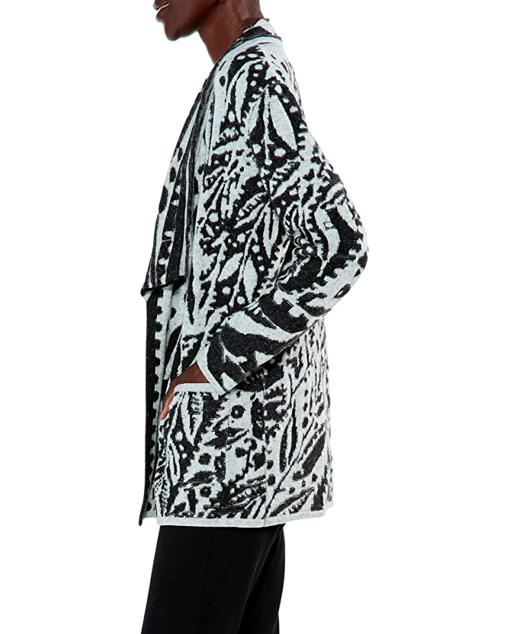 - Midweight, relaxed fit, jacquard knitted cardigan featuring an extra drapey shawl collar for added comfort.