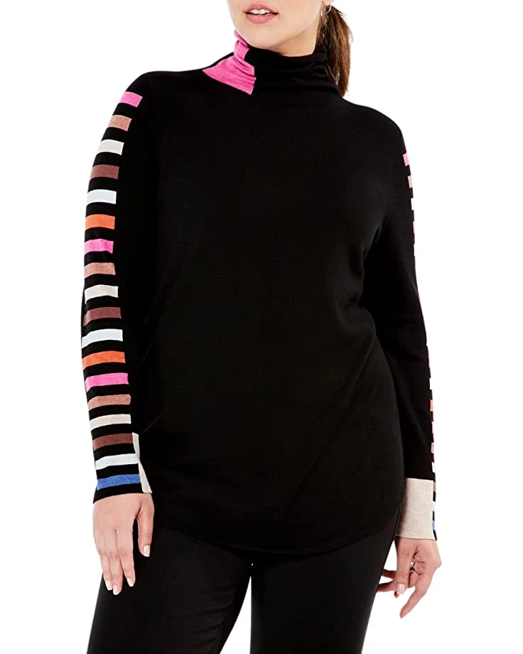 NIC+ZOE Sweaters Plus Size Stripes Aside Vital Turtleneck